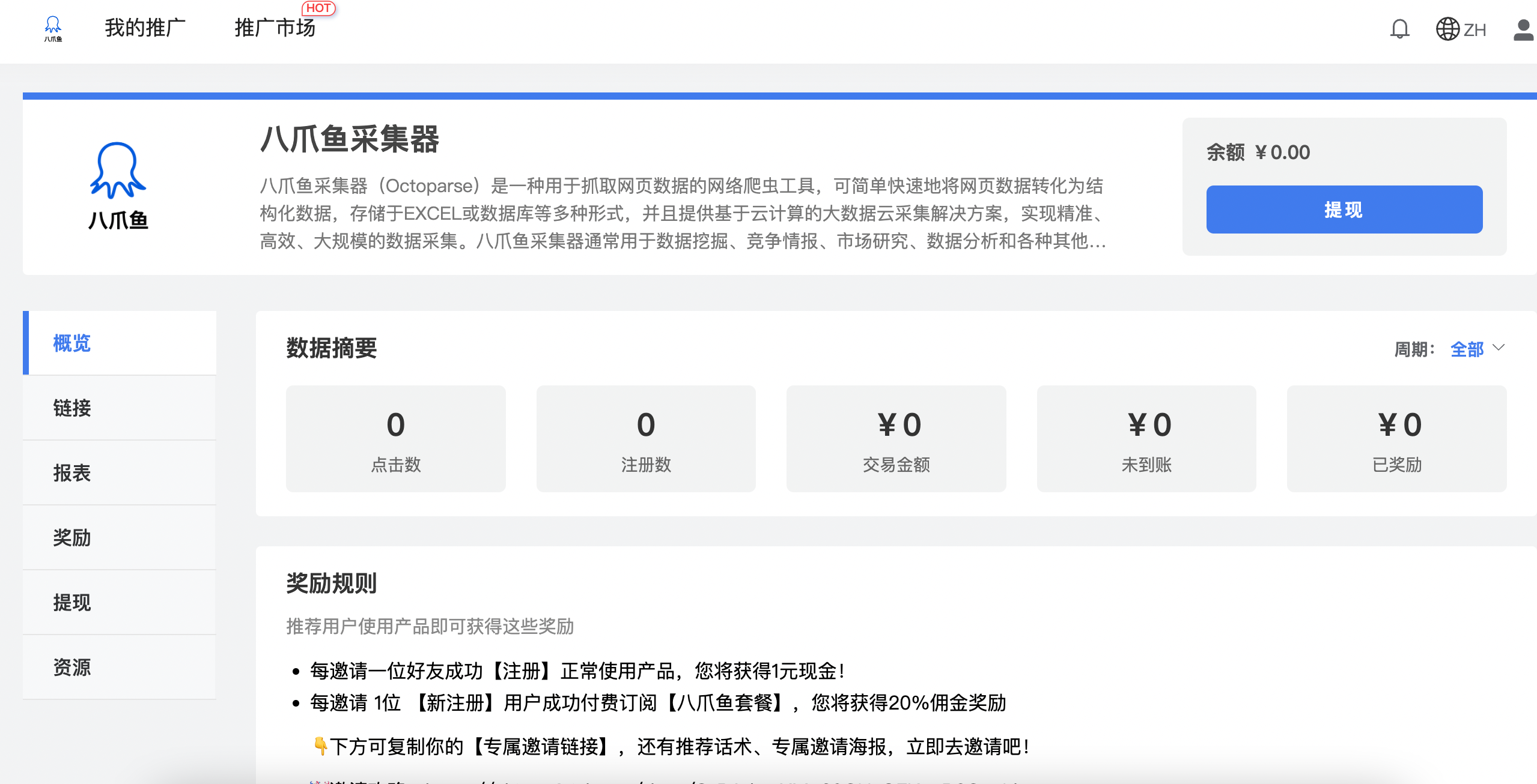 八爪鱼就是通过这种方式给非产品用户开设了一个单独的登录门户,用户只需要点击“立即加入”进行登录,便可成功成为八爪鱼采集器的合作伙伴,然后在自己的后台轻松获取推广链接并统计推广效果,从而灵活提取推广所得佣金。