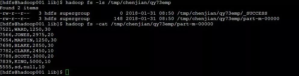 2) 将oracle中的emp表中的empno,ename,sal,deptno列导入到hdfs中的/tmp/chenjian/qy73emp目录下