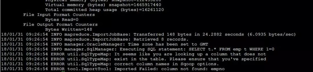 1.2 使用sqoop将oracle数据导入到hdfs中