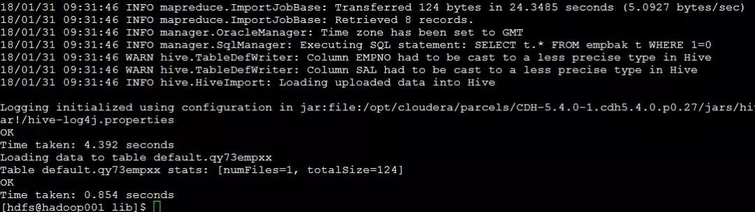 sqoop import --hive-import --connect jdbc:oracle:thin:@192.168.153.12:1521:orcl --username scott --password tiger --table empbak -m 1 --columns 'EMPNO,ENAME,SAL' --hive-table qy73empxx