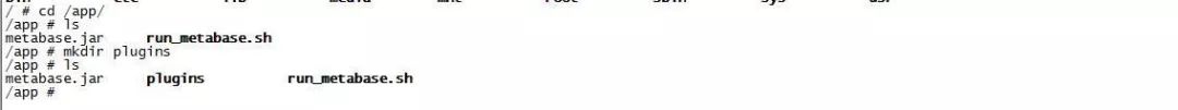 7、进入app目录下,使用“mkdir plugins”命令创建plugins目录,然后Ctrl + D退出容器;