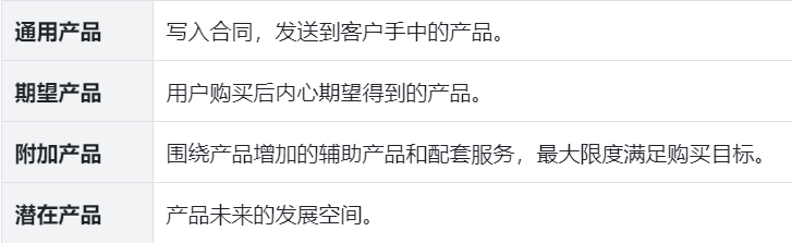 在精确市场后,需根据产品特征构建产品,这其中涉及一个重要的概念~“整体产品”。在营销时向客户承诺交付的产品跟实际交付的产品是不一样的,两者之间会存在落差。要消除落差,必须强化产品,增加配套服务和辅助产品,使之成为整体产品。哈佛大学教授莱维特,提出整体产品模型的概念,将产品分为四个层次。