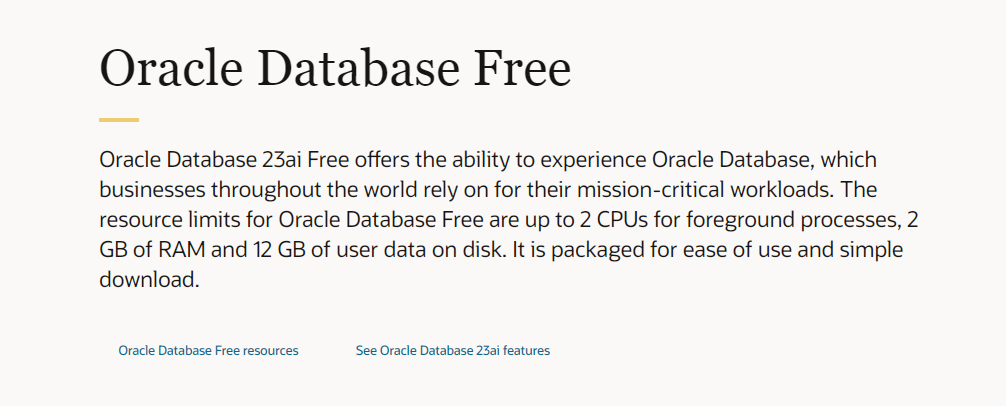 Oracle推出Oracle Database 23ai免费试用地址:https://www.oracle.com/database/free/