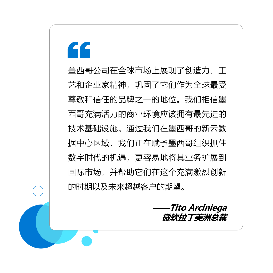 微软云包括Azure、Microsoft 365、Dynamics 365、Power Platform和游戏服务,这些服务将通过新的墨西哥中部数据中心区域本地交付。
