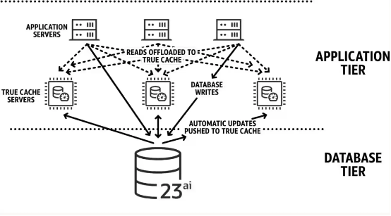 在 Oracle Database 23c 中,开发人员希望通过名为“True Cache”的新功能解决 Oracle Database 中的缓存问题。True Cache 是在主数据库之前运行的非磁盘 Oracle 实例,该实例利用 Active Data Guard 技术确保其随着主数据库实例中的数据变更而自动更新。这种新型缓存技术最重要的功能之一,就是在简单配置与最低程度代码更改需求的前提下即可发挥作用。