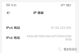 如下图,通过查看我的手机终端,有两个ip地址,分别是v4地址和v6地址。