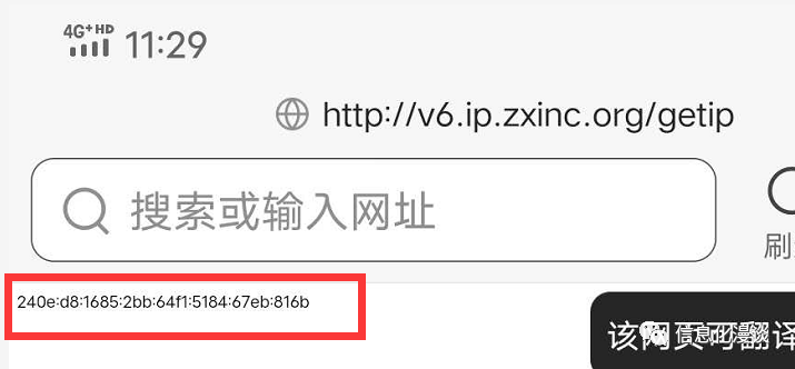 我尝试通过该手机终端访问一个支持ipv6的网站,该网站显示了我的ipv6地址,说明我的确是通过ipv6地址访问的该网站。