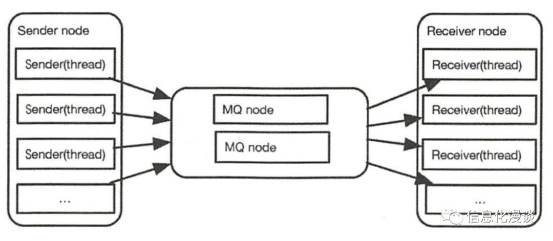 一种方式是将消息放入消息队列后,消息队列直接将消息发送至接收者,也称为点对点的模式。