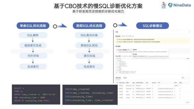 这样,NineData就提供了一套基于CBO技术的智能慢SQL诊断与优化解决方案,简化了开发过程,提高了代码性能。