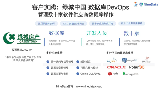 过去的流程存在一些问题:要 么 DBA 需要陪同供应商进行操作,要么直接将账号密码临时给到供应商,这两种方式都不够安全和高效。为了改善这种情况,绿城采用了 NineData。