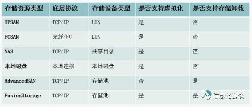 如下图可知,大部分的存储资源都支持虚拟化存储。
