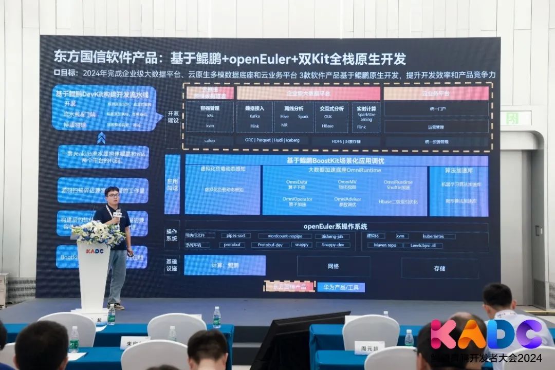 在鲲鹏开发者峰会上,大数据事业部副总王虎受邀分享了以《共建原生开发新体系,打造大数据计算生态》为主题的鲲鹏原生开发实践经验,展示东方国信产品在DevKit和BoostKit合作开发内容和效果,从深化业务联创构筑领先竞争力、一体机合作、原生开发技术持续加强三个方面进行联创展望,未来东方国信将持续深化鲲鹏原生开发技术合作,共建繁荣生态。
