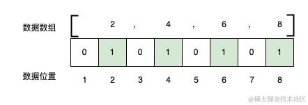 而如果采用bitmap的思想,只需要构建一个8bit空间,也就是一个字节的空间来存储,如下图。
