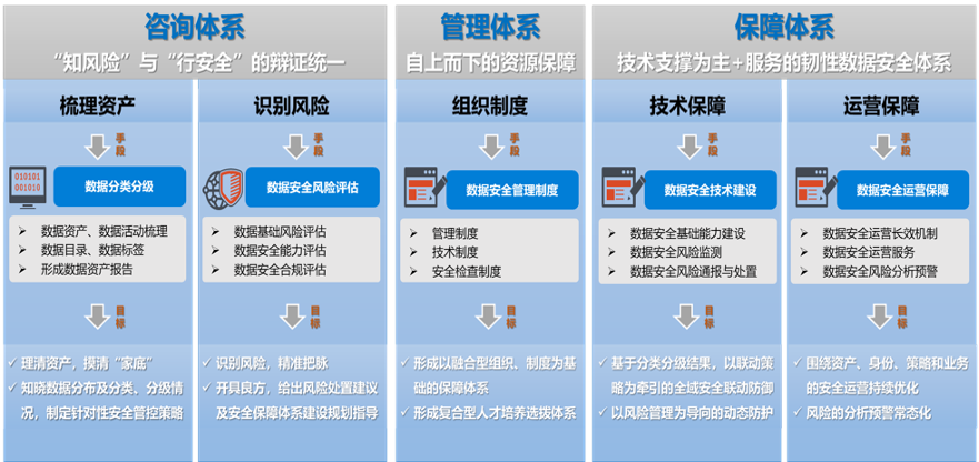 在对数据做安全保护措施前,应该要知道目前有哪些数据,以及这些数据在使用过程中会遇到哪些安全风险,做到“知风险”与“行安全”的辩证统一。