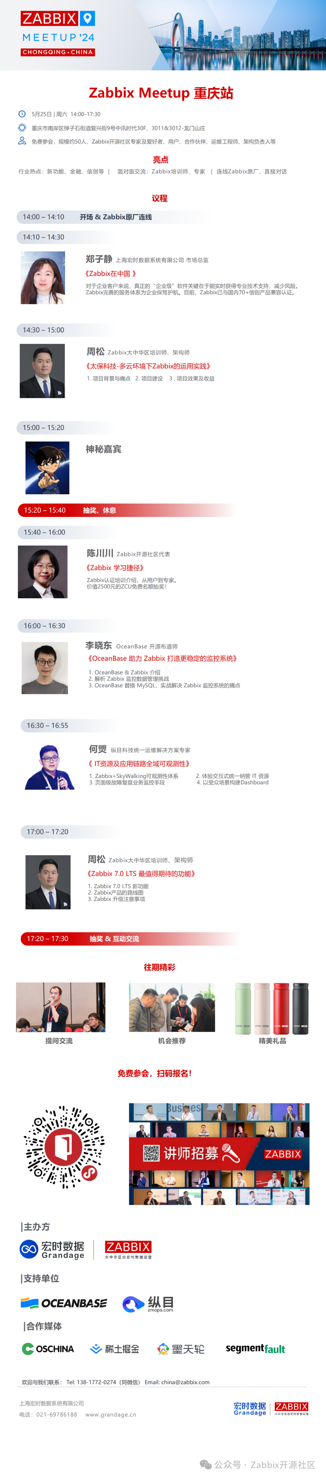 Zabbix Meetup重庆站将在5月25日举办,免费报名,欢迎参加,了解更多客户案例!