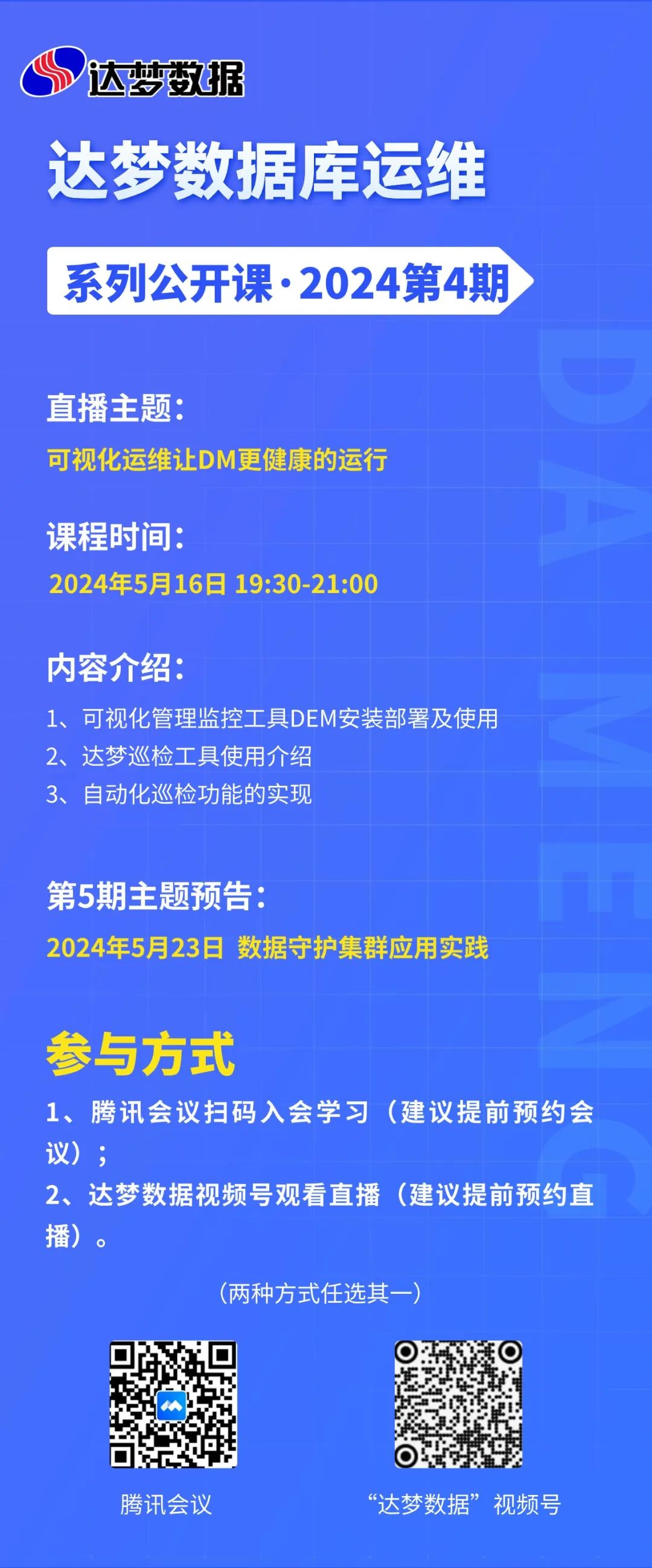 5月16日晚七点半!达梦数据库运维系列公开课第③期《可视化运维让DM更健康的运行》准时开播!