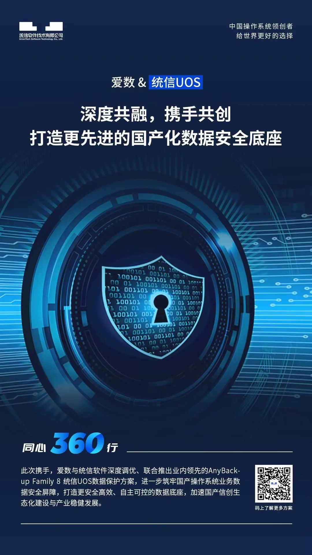 此次携手,爱数与统信软件深度调优、联合推出业内领先的AnyBackup Family 8 统信UOS 数据保护方案,进一步筑牢国产操作系统业务数据安全屏障,打造更安全高效、自主可控的数据底座,加速国产信创生态化建设与产业稳健发展。