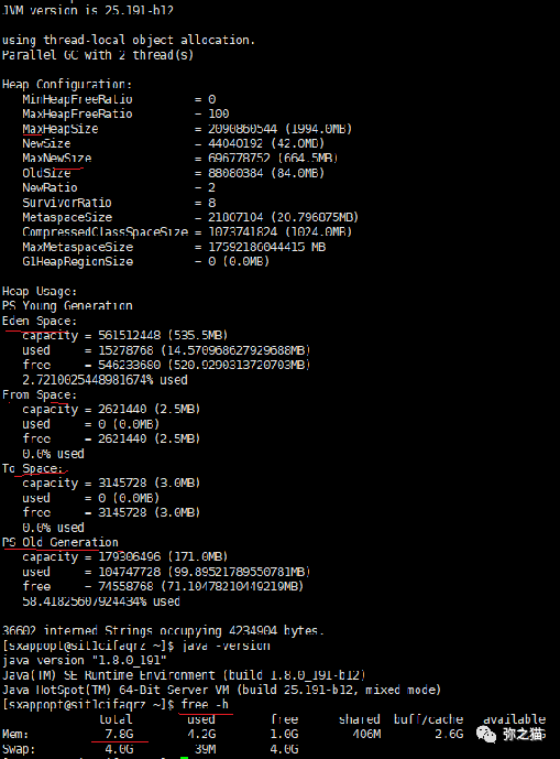 读了上面两个小结,我们想一个实际开发中的例子来佐证我们的描述。问:在一个spingboot工程,使用1.8jdk直接进行启动(未进行任何设置)之后,它的新生代、年老代是多少?它的垃圾回收机制是什么样的。