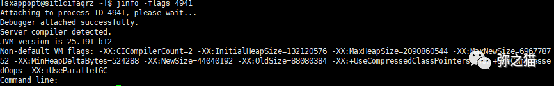 不卖关子啊,使用jps –l 获取进程号,jmap -heap 进程号来获取堆内存信息,jinfo -flags 进程号来获取jvm参数信。我们得到了如下两张图: