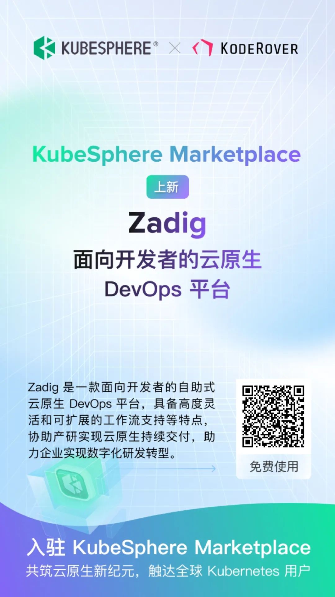 近日,KodeRover 公司旗舰产品云原生 DevOps 工程平台 Zadig 成功上架 KubeSphere Marketplace!