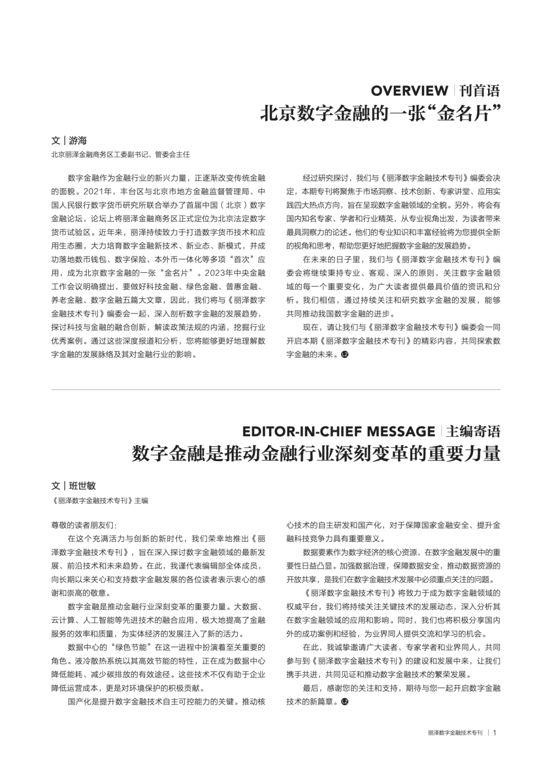 2021年,在由丰台区与北京市地方金融监督管理局、中国人民银行数字货币研究所联合举办的首届中国(北京)数字金融论坛上,丽泽金融商务区正式定位为北京法定数字货币试验区。《丽泽数字金融技术专刊》致力于成为数字金融领域的权威平台,秉持专业、客观、深入的原则,关注数字金融领域的每一个重要变化,为广大读者提供最具价值的资讯和分析。