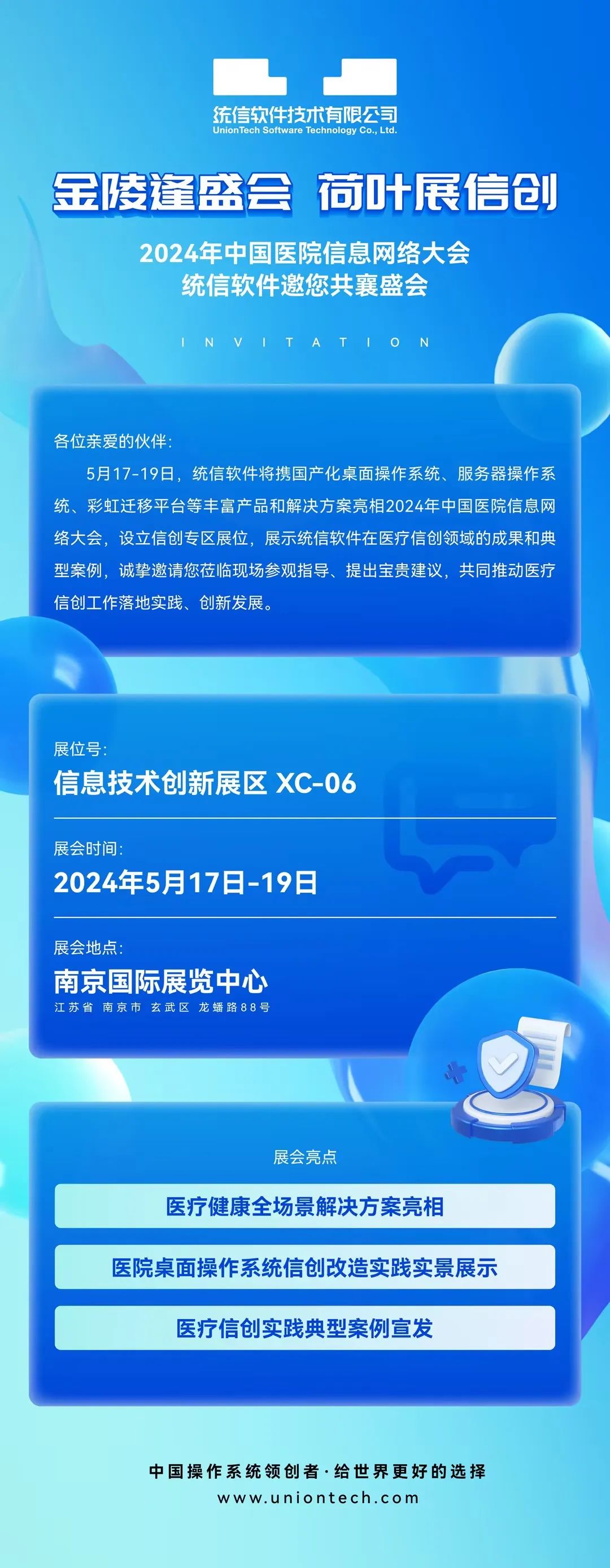 我们诚挚邀请您莅临现场参观指导,提出宝贵建议,共同推动医疗信创工作落地实践、创新发展。您的每一份反馈都是驱动我们不断前行的宝贵动力,期待在此次盛会中与您相遇,于交流与碰撞中,共绘未来医疗信息化的宏伟蓝图。