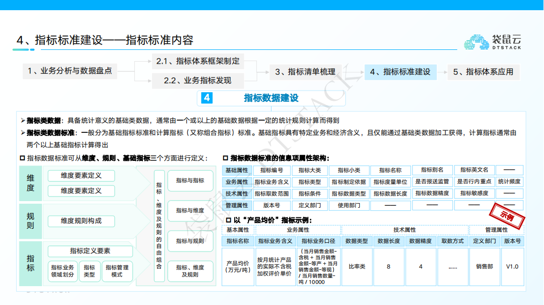 制定指标标准:确立一套包括业务属性、技术属性和管理属性在内的指标标准,确保指标的规范性。