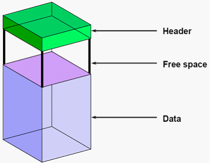Data :已经写入数据的空间。数据存放数据的方式是自底往上的,就像现实中的一个箱子。