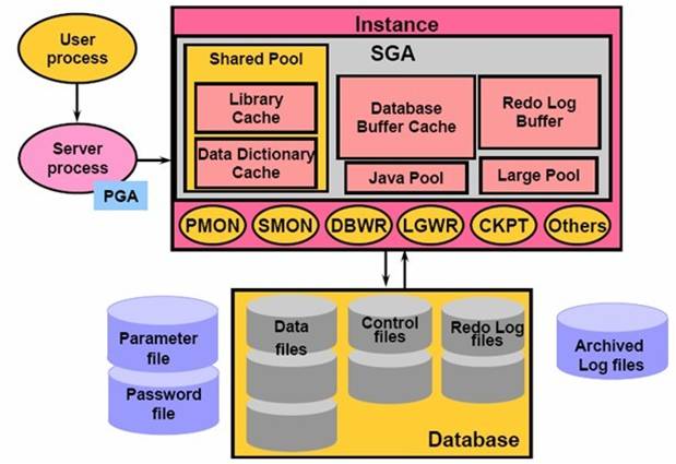 由SGA和系列后台进程共同完成用户发起的请求。