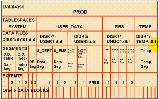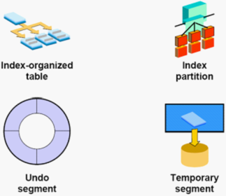 Segments (段): 段是表空间的重要组织结构,段是指占用数据文件空间的通称,或数据库对象使用的空间的集合;段可以有表段、索引段、回滚段、临时段和高速缓存段等。