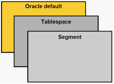 2、一些参数只能在指定的级别上进行修改。有些参数只能表空间级别设置,有些参数只能在段级别设置。
