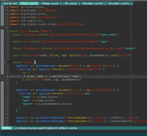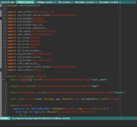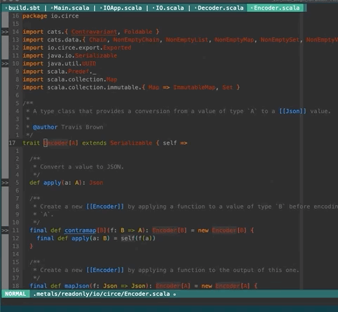 从以上的例子中你会发现,目前Metals在Vim上只支持最基本的代码跳转,代码补全以及代码格式化等功能,对代码重构的支持还比较弱,且无法进行Debug。但幸运的是重度重构和Debug在Scala代码中发生的概率都很小,Metals完全可以满足你的日常开发需求。