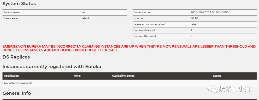 启动eureka-server, 通过浏览器访问,我们可以看到正常启动。