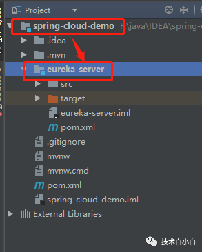 项目搭建完成了,但是项目结构不太友好,整个spring cloud 项目中会有 服务注册与发现组件,即我们刚刚搭建的组件,还有服务提供者,服务消费者,Hystrix熔断,feign,ribbon负载均衡等组件,因此我们要将组件整合到一个项目中,添加各个模块即可(Module),因此我们更改一下项目结构