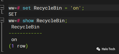 在Halo数据库中,要启动回收站,关键是启动参数RecycleBin,该参数可以通过set指令在会话里动态设置,默认为off。
