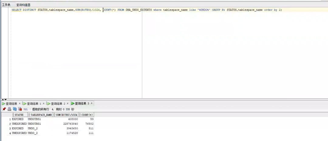 Oracle Undo段中区3种状态(DBA_UNDO_EXTENTS的STATUS列):ACTIVE、EXPIRED和UNEXPIRED。