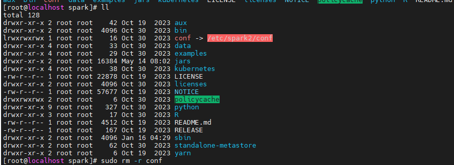 spark配置文件:spark 配置文件目录为软连接,所以打包拷贝时只是软连接,并没有拷贝实际内容,需要手动拷贝一下