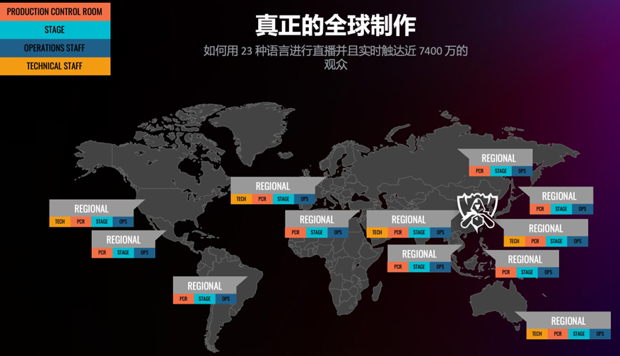 也正是依赖 Riot Direct,使得拳头游戏可以将全球实时直播做到同时在世界范围内23种不同的语言进行直播,并且实时触达接近7400万的观众。