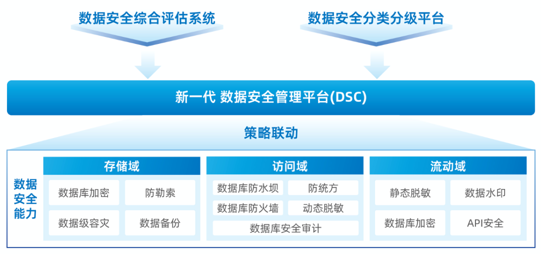 基于“韧性”数据安全体系,美创研发形成覆盖数据存储域、访问域、流动域的全面产品能力。针对国产化、混合多云带来的复杂性挑战,新一代数据安全管理平台(简称:DSC),以1个云管理中心+N个端点能力形成云端一体化布局,可提供全域防护,灵活快速适配各种业务场景。