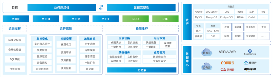 美创运行安全,聚焦业务连续性和数据完整性,通过运维左移、监控状态变化、控制运维变更、快速重建数据和灾备接管,保障业务运行处于可预期范畴,并提供底线防御和极限生存能力,实现业务运行韧性。