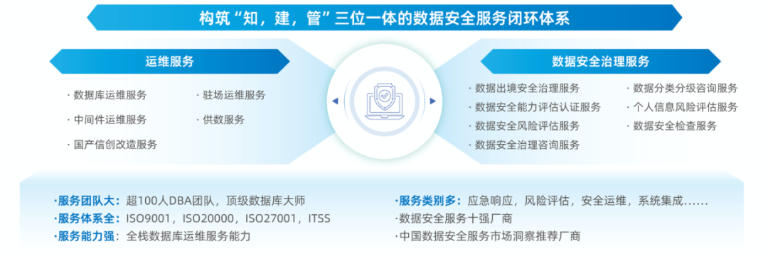 美创安全运维服务,以数据为中心,以专家级支撑,基于政策合规、组织发展战略、风险治理等诉求,提供规划建设、落地指导、运维支持、应急支撑、持续优化等综合服务体系。