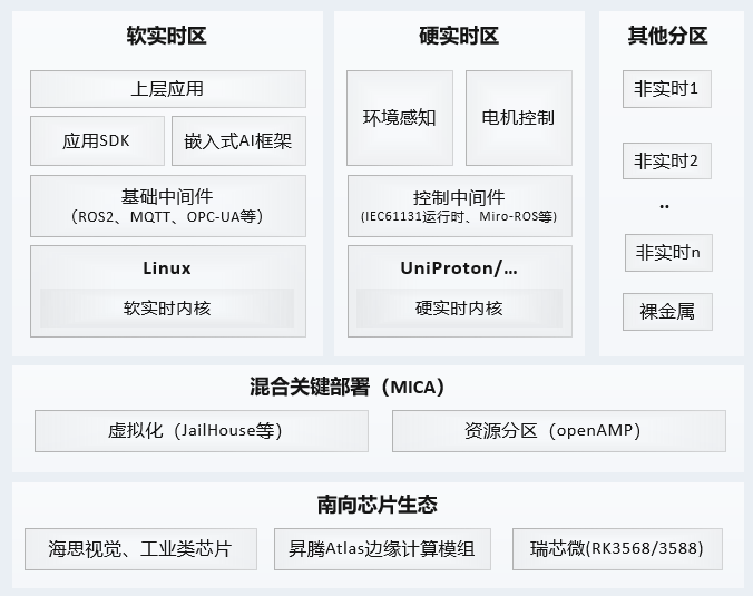 鼎桥TD OS嵌入式发行版V1.0是首个基于海欧派完成 openEuler 社区官方认证的发行版,同时支持海思Hi3093系列,瑞芯微RK3568/3588系列等芯片平台,具有较强的国产化硬件平台亲和性。同时鼎桥发行版针对宽带无线场景进行了定制性增强,支持鼎桥5G RedCap模组MT5710系列,更加适应工业智能制造等带宽时延敏感性场景。在机器人和AI方面,鼎桥发行版已经集成嵌入式ROS2运行时框架和嵌入式AI框架,能够释放海欧派的全部10.4T算力资源,更有助于行业人工智能算法应用的快速开发和迁移落地。