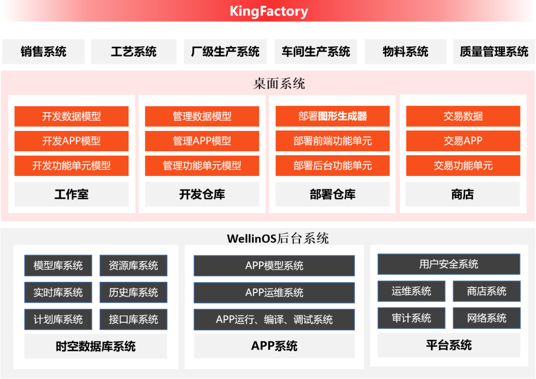 作为KingFactory数字工厂管控平台的坚实后盾,WellinOS云操作系统提供强大的数据存储、处理和分析能力,以及高度的系统稳定性和安全性。产品支持云-边-端的总分部署架构,实现系统权限、工程开发、生产业务的统一管控,为锂电材料企业的数字化转型提供坚实的技术基础,构建一个安全、高效、可扩展的数字化平台。