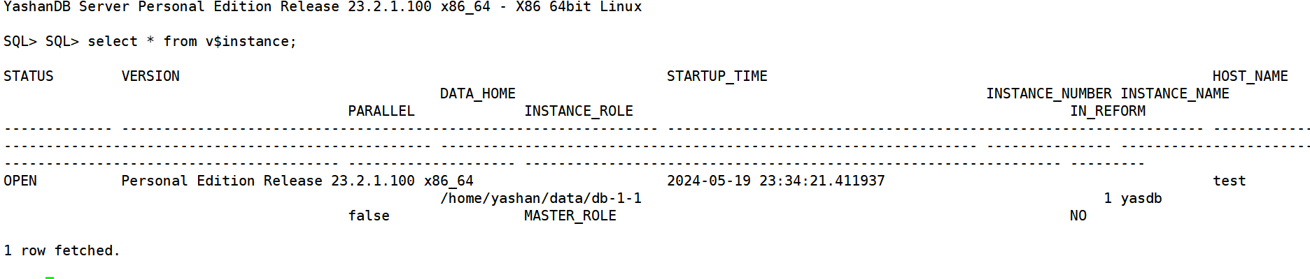 yashan 100081 99529 26 23:34 pts/1 00:02:19 yasdb open