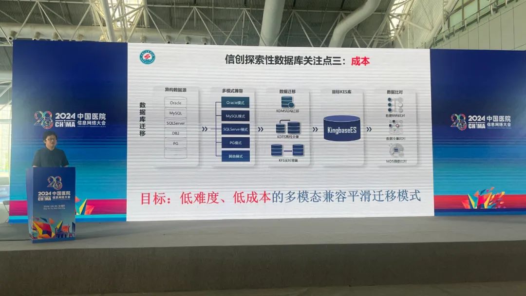 随着医疗信息化、数字化的不断深入,医疗数据的安全性、稳定性和可管理性成为医院高质量发展的关键。上海市皮肤病医院史淳樵在做《基于国产数据库的上海皮肤病医院HIS系统升级改造初探》优秀论文宣讲时表示,医院在金仓数据库双轨并行方案的护航下,利用金仓异构数据同步软件KFS,实现异构数据库双向实时同步,确保原应用系统数据库和金仓数据库之间数据实时一致,通过同步方向和应用的切换,提供完善的回退能力,为HIS系统上线提供了秒级的回退保障。在信创与国产化分论坛上,天津市宝坻区人民医院副院长吴秀春做《信创在医院信息化建设中的探索和尝试》主题演讲。吴院长介绍到,在金仓数据库产品的支撑下,基于金仓柔性数据迁移和双轨并行的技术方案,医院实现了新老系统的数据双向同步和复杂业务的快速迁移,实现了新一代信息技术与业务场景的深度融合,保障医院数据安全和高效管理。作为数据库领域国家队,人大金仓深耕数据库技术四十余年,坚持走学科自主开创、产品自主研发、人才自主培养之路,确保“每一行代码皆可掌控”。经国家权威认证,KingbaseES V9代码自主率达100%。在数字医疗建设的推进过程中,人大金仓率先布局,构建了一系列满足医疗健康领域要求的新能力。目前,金仓数据库已经积累了多个HIS、LIS、PACS、EMR等医疗核心业务系统的成功案例,这充分表明国产数据库已经能够满足医疗行业对数据安全性、稳定性和高效管理的需求。