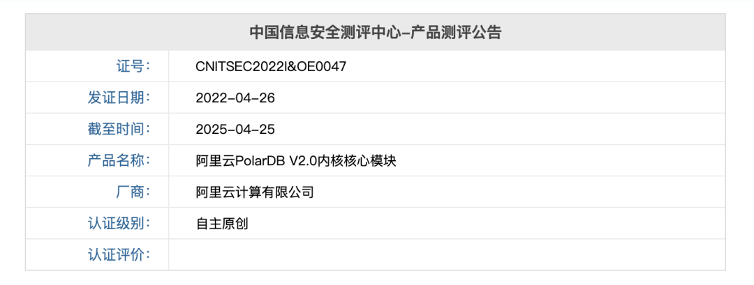 因此,我们想了一个绝妙的折衷办法 —— PolarDB for PostgreSQL。根据 【安全可靠测评结果公告(2023年第1号)[2]】,附表三、集中式数据库:PolarDB 属于自主可控,安全可靠的国产信创数据库。(中国信息安全测评中心-产品测评公告,证书编号:CNITSEC2022I&OE0047[3])