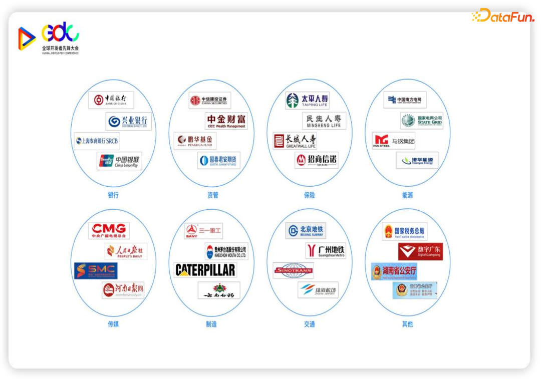 下面是我们的一些客户,大家可以看到种类非常多,有金融类的、产业类的,还有传媒以及政府。不同用户的业务场景差别非常大,数据规模、集群规模的差别也非常大。他们对于大数据如何使用,对于数据服务的要求也非常的不一样。