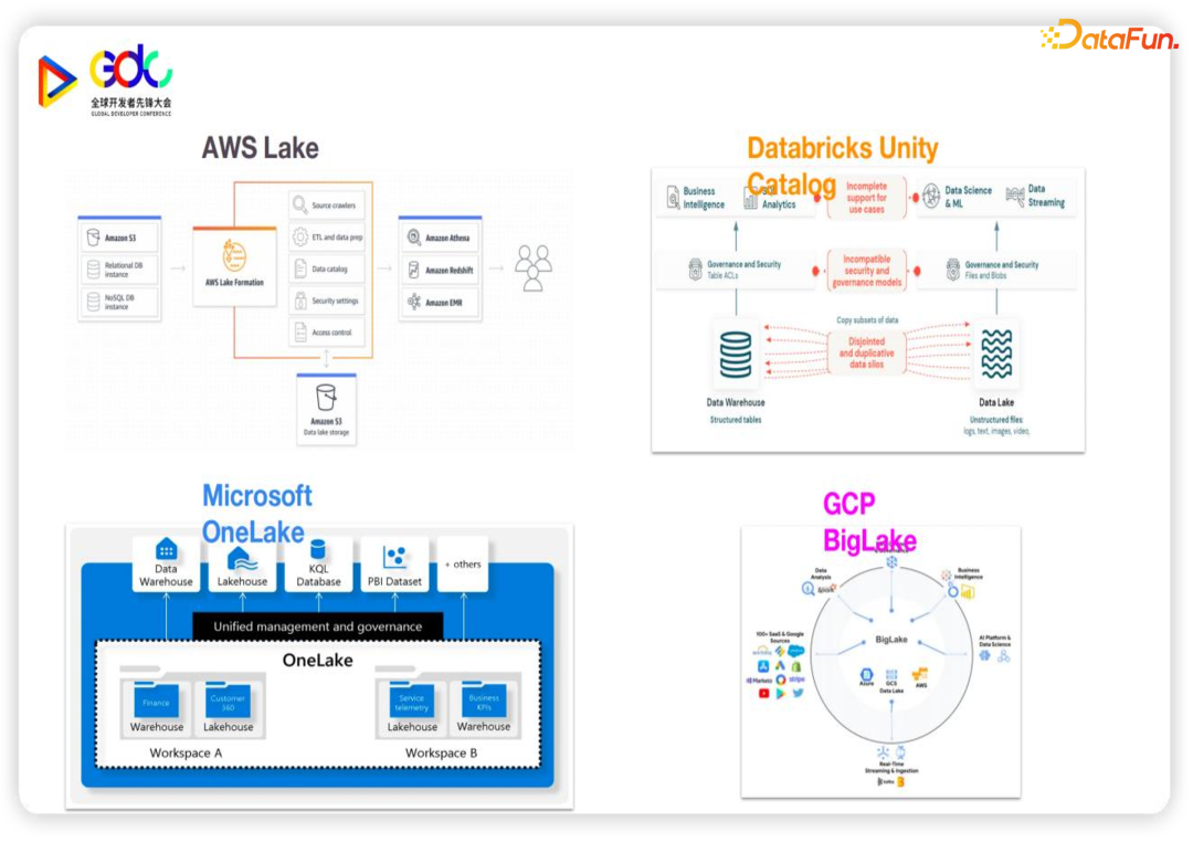 我们其实也看到主流的云厂商基本提供了相关的产品来解决数据孤岛以及权限孤岛的问题。这样的解决方案一般都会被包装成为数据湖产品的一部分,例如 AWS的 Lake Formation,Databricks的 Unity Catalog,此外 Microsoft和 Google也有自己的产品。但是对于这样的商业公司所主导的产品,他们也有自己的局限性。