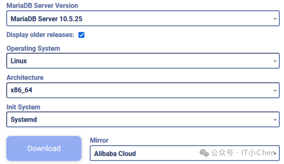 由于 MariaDB Auditing Plugin 集成在MariaDB里面,没有单独提供,所以我们需要先下载一个MariaDB。