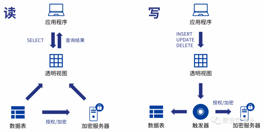 数据库中置加密主要有数据列加密和表空间加密两种方式,通常是通过数据库本身的可编程性或配置其安全组件来实现,所以在每种数据库上的具体实现可能存在着比较大的差异。